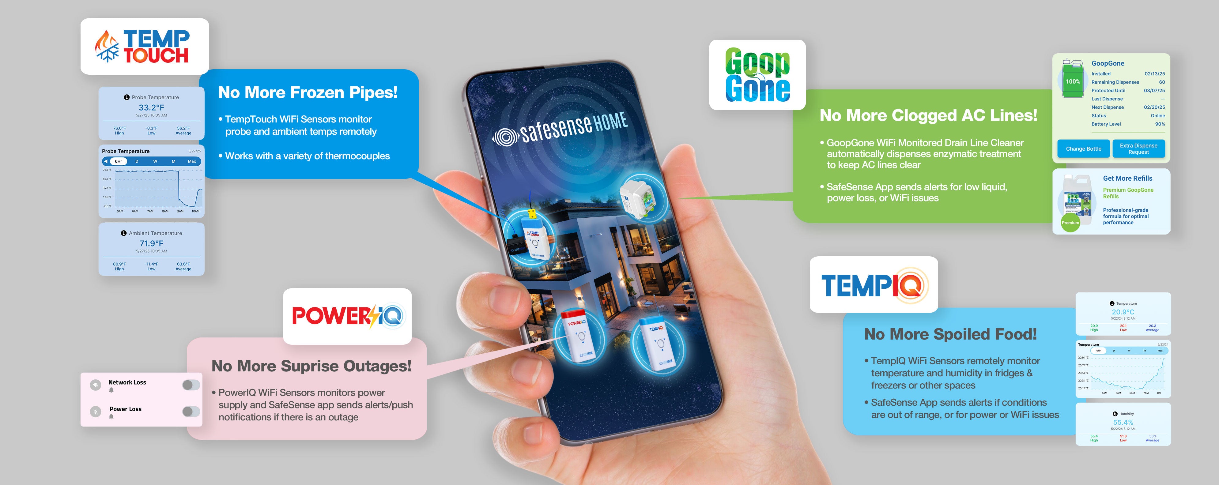 SafeSense Home is your all-in-one solution for real-time monitoring of temperature, humidity, pipe freezing risk, power status, and HVAC blockages right from your mobile phone. With more smart sensors on the way, SafeSense gives you peace of mind and total visibility across your home, RV, or business.